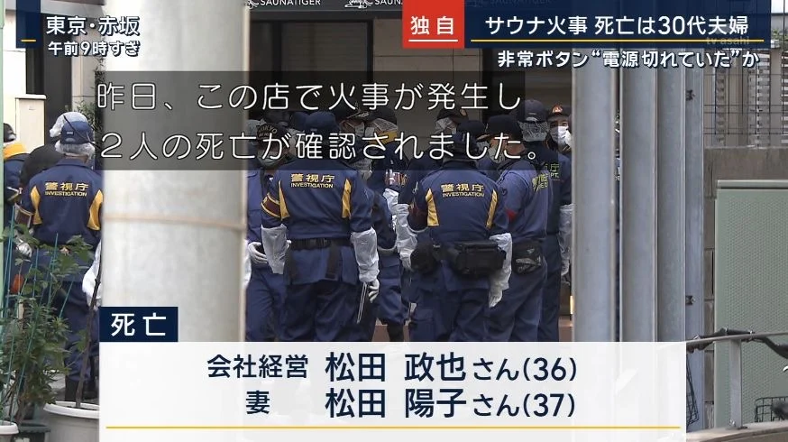 고급 프라이빗 사우나에서 화재가 발생해 손님으로 방문한 30대 부부가 사망