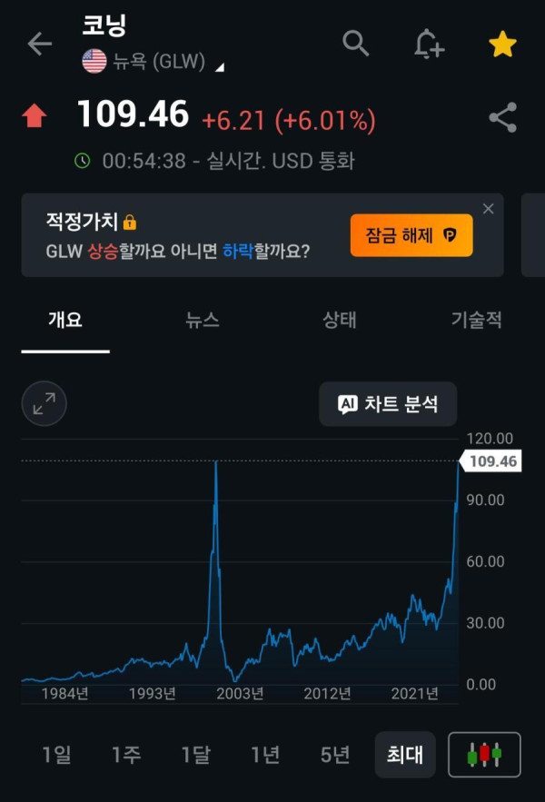 유리회사인데 요즘 광섬유로 Ai 수혜주 제대로 25년만 전고점 돌파..