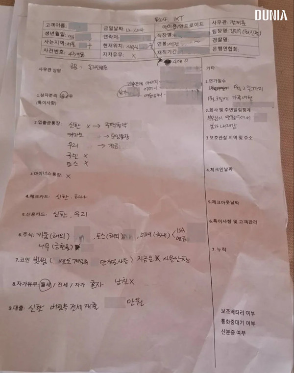캄보디아 조직이 가지고 있는 개인정보 수준