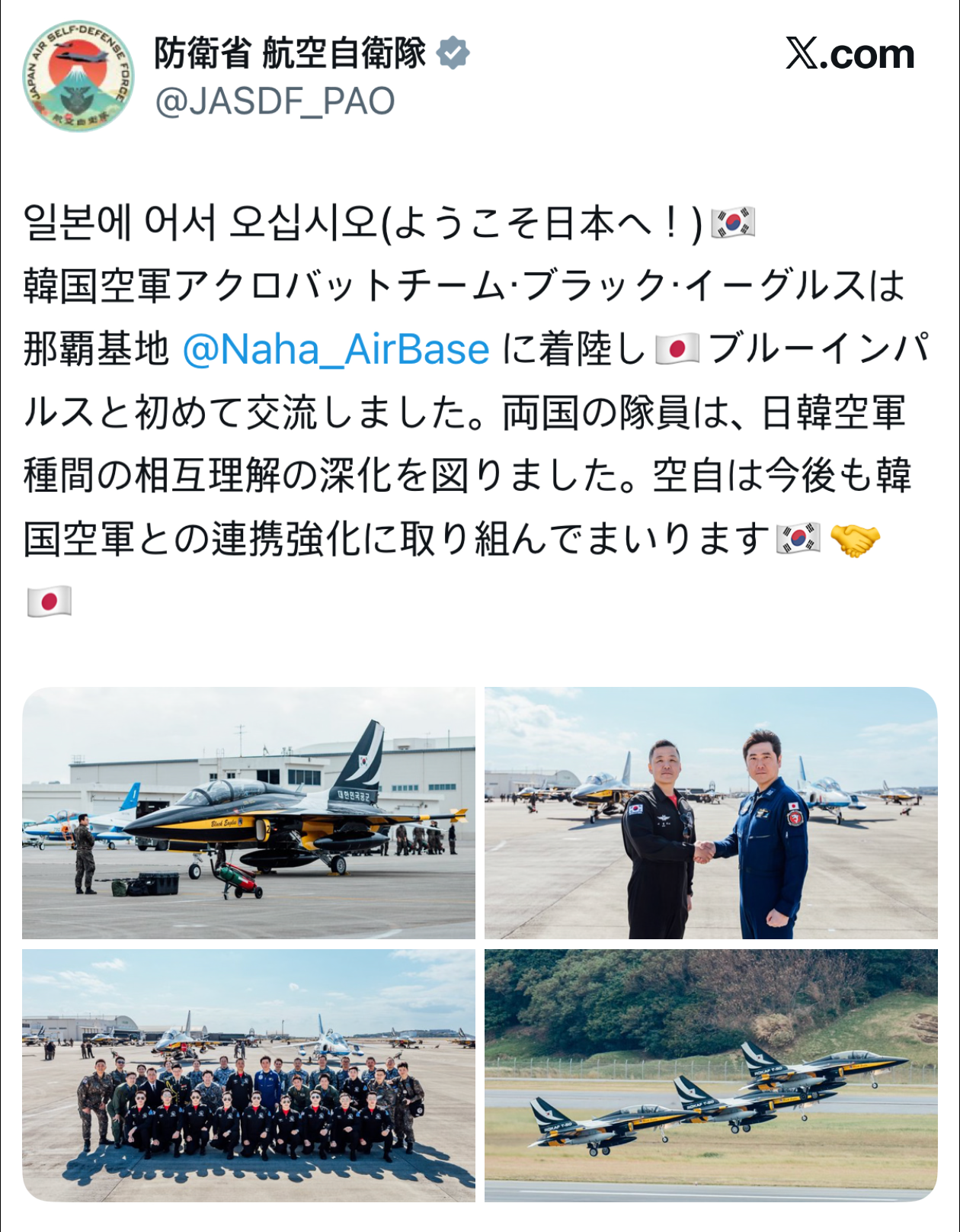 블랙이글스가 일본에 도착함