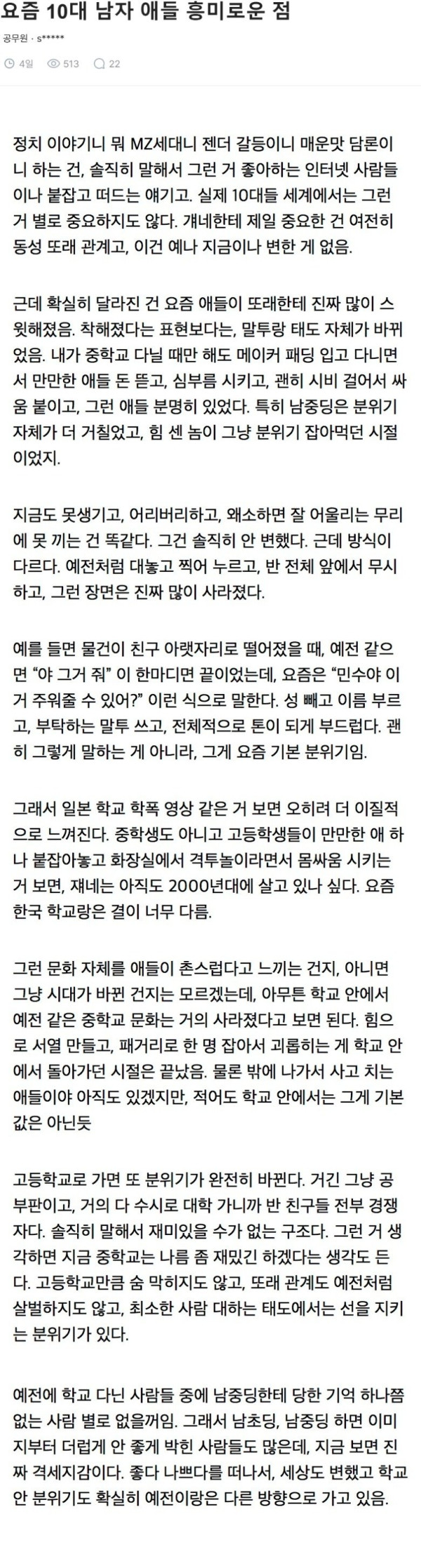요즘 10대 남자애들 특징