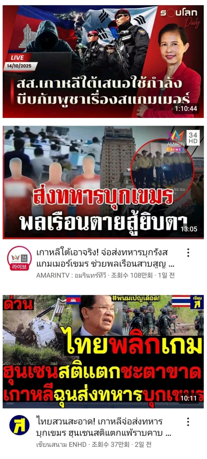 캄보디아로 혼란스러운 한국... 태국 국뽕튜브 근황