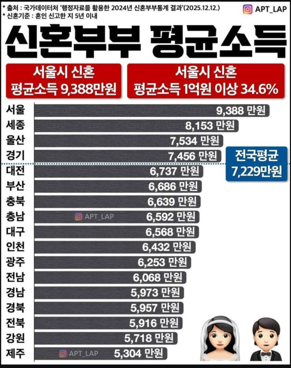 요즘 신혼부부 평균소득 ㄷㄷ.