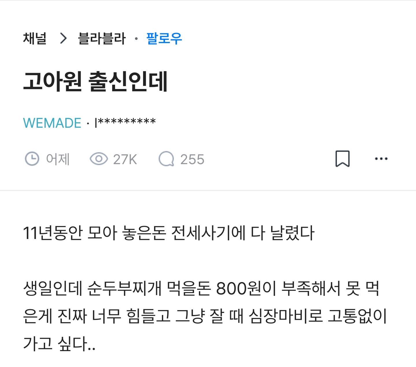 11년동안 모은 돈 전세사기로 다 날려서 죽고싶다