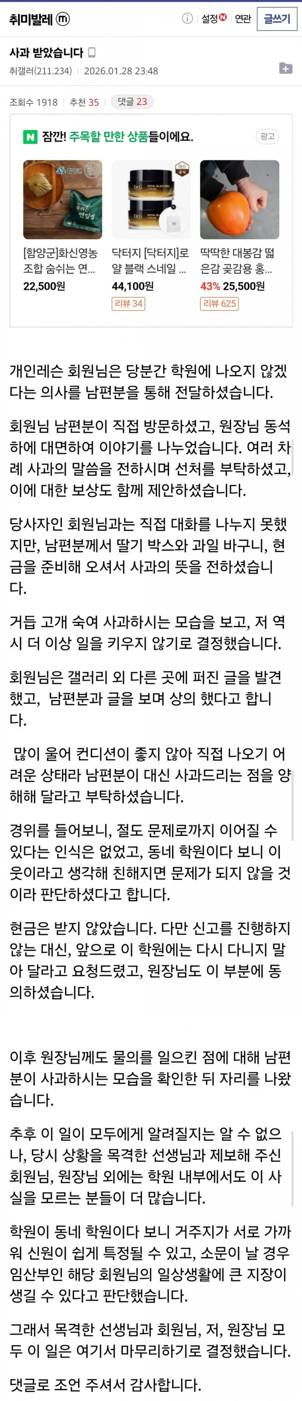 발레학원에서 딸기 훔쳐먹은 임산부 수강생 후기