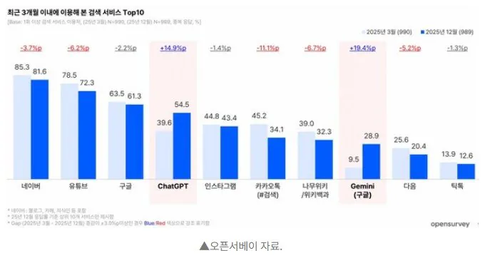 챗지피티 + 제미나이 치고올라오는 속도 미쳤는데