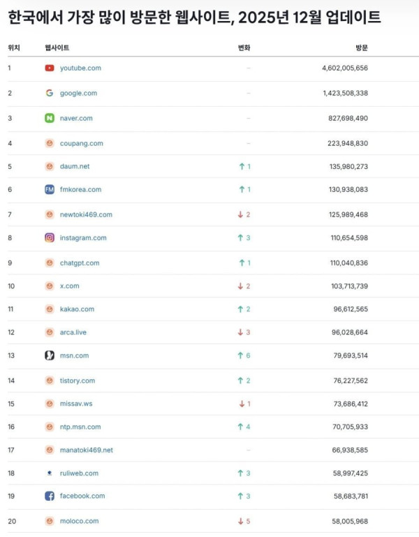 불법사이트가 2개나 순위권 음란물사이트도 순위권 가장 놀라운건