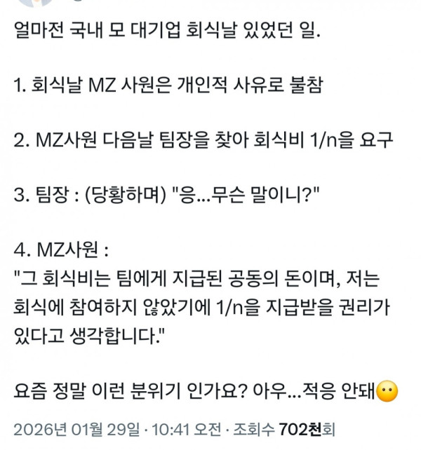 얼마 전 국내 모 대기업 회식 날 있었던 일 ㄷㄷ