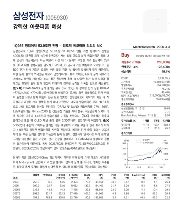 오늘(4월3일) 나온 메리츠증권 삼성전자 리포트