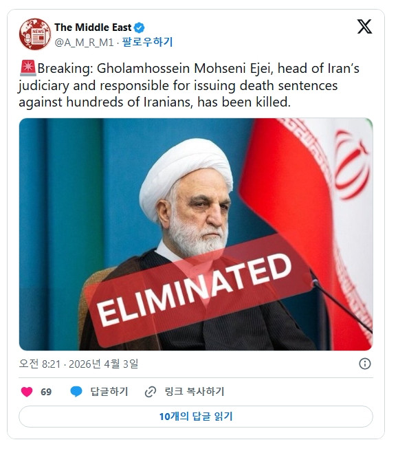 속보) 이란 사법부 수장 사망