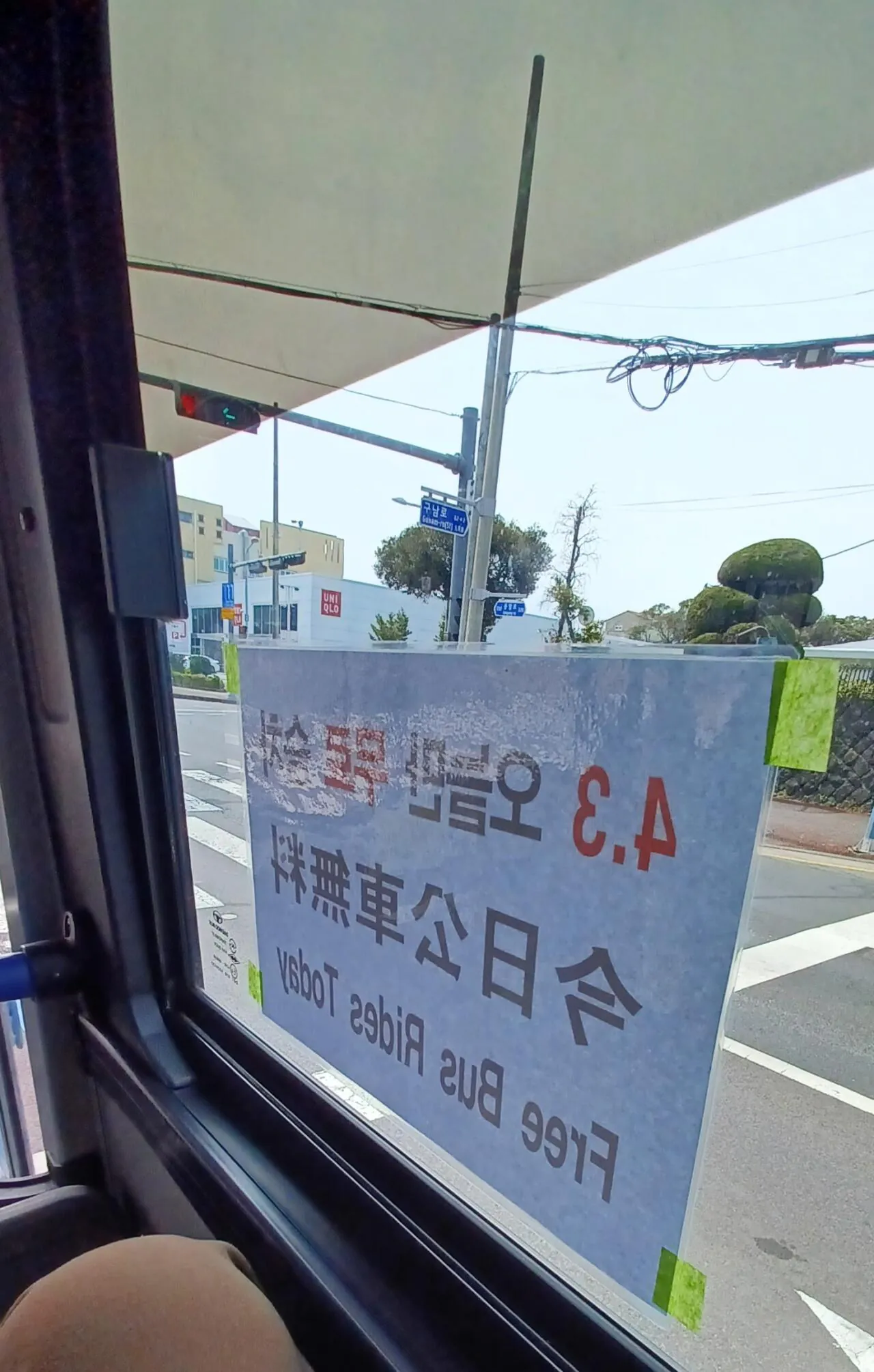 작년 12월에 조례를 만들어서 준비 기간이 부족했는지 올해는 교통카드 태그 없이 시내버스 이용 가능※ 무료승차 제외 노선: 우도관광지순환, 해안도로 순환, 시티버스(921, 922, 1111, 1112, 1113번 노선)버스 내부 외에는 정류장 등에 안내문이 없었고(버스 도착정보 단말기 포함), 사전 홍보가 부족했는지 카드를 준비하고 탔다가 스티커보고 무료인줄 아는 승객이 많았음