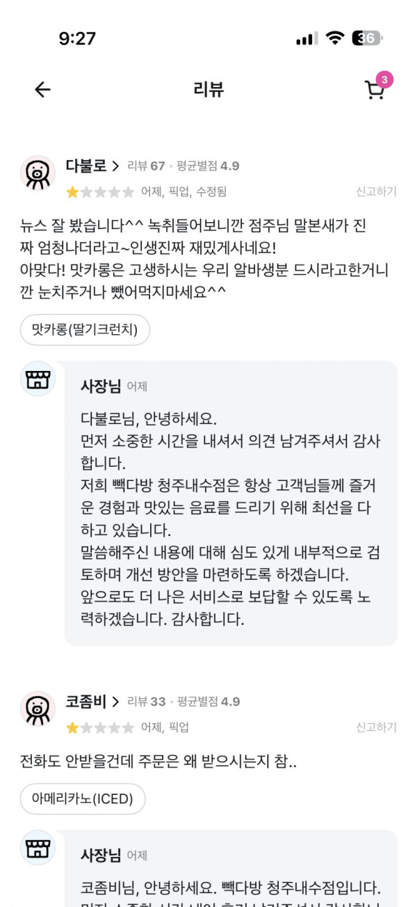 시켜야 리뷰 남길수 있어서...