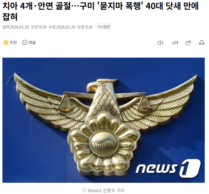 치아 4개·안면 골절…구미 '묻지마 폭행'