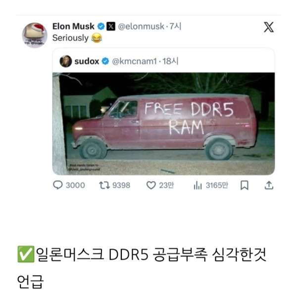 SK하이닉스랑 삼성전자 주식 사라고 힌트주는 일론 머스크
