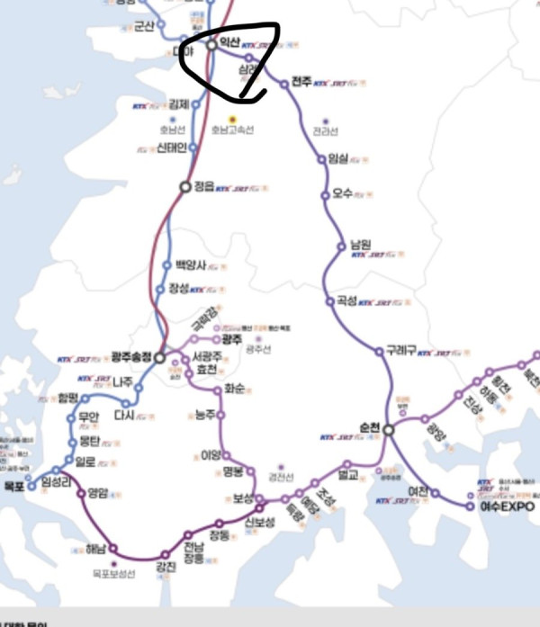 익산역은 광주목포/전주순천/군선으로 가는 열차가 갈라지죠