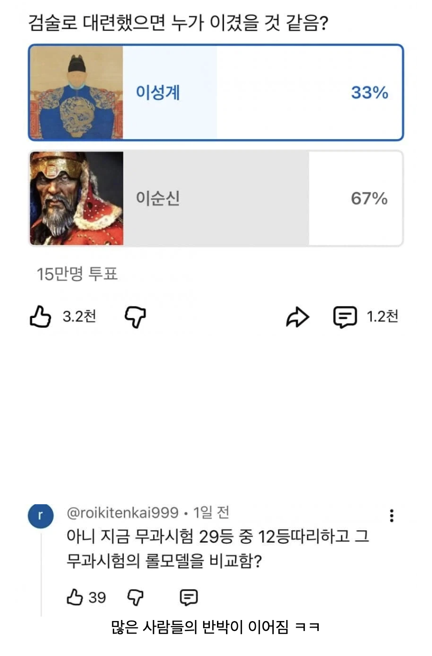 한국사 인물 검술 대련 투표 논란