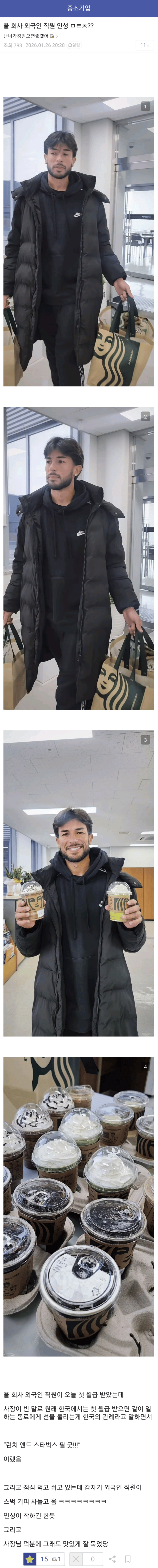 열람중 첫 월급받은 외국인 직원 월급 뜯어먹었다는 중소기업 사장 등급아이콘 레벨아이콘 커뮤관리자 01.27 91