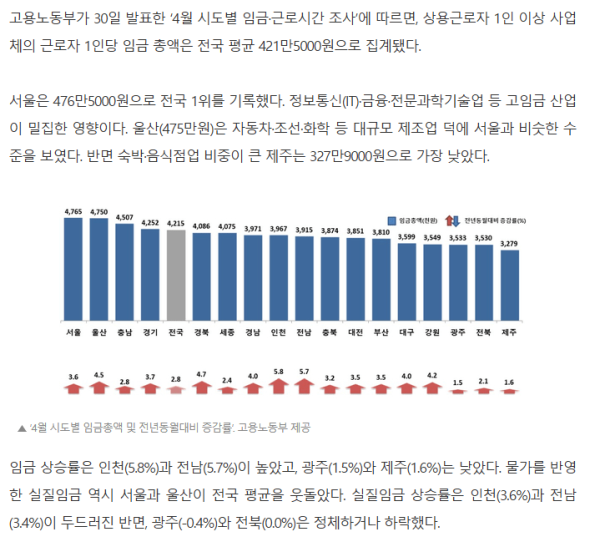 평균 월급 500만원 근접해가는 서울 ㄷㄷ