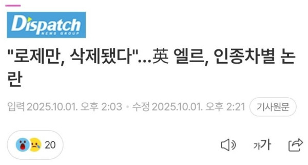 "로제만, 삭제됐다"…英 엘르, 인종차별 논란 | 디스패치 | 뉴스는 팩트다!