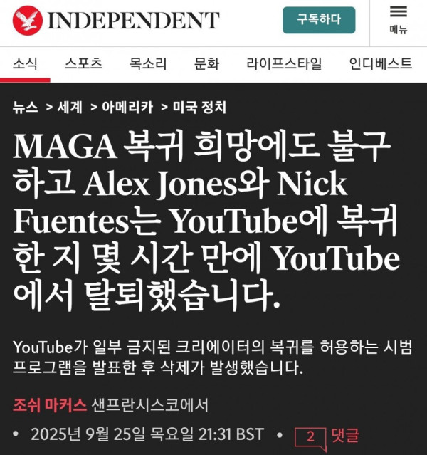 현재 유튜브는 바이든 정부 당시 계정 폭파된 마가 계정들 복구 시켜주고 있는데