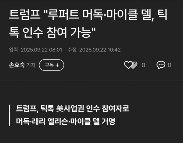 트럼프 "루퍼트 머독·마이클 델, 틱톡 인수 참여 가능" | 한국일보
