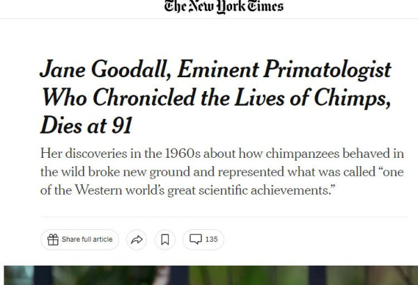 2025년 10월 1일 수요일 아침, 유엔 평화 사절이자 영장류학자인인 제인 구달 박사(DBE)가 91세의 나이로 자연사로 별세했다고 제인 구달 연구소가 몇 시간 전 발표했습니다. 제인 구달 박사는 미국 강연 투어의 일환으로 캘리포니아에 머물고 있었다고 합니다