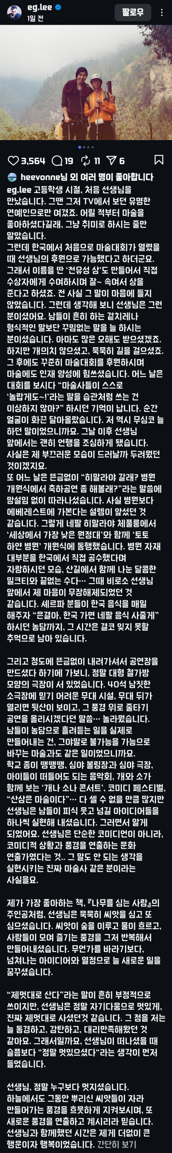 이은결 마술사 故 전유성 추모