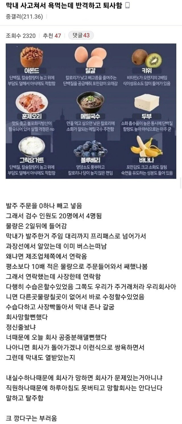 막내 사고쳐서 욕먹는데 반격하고 퇴사함