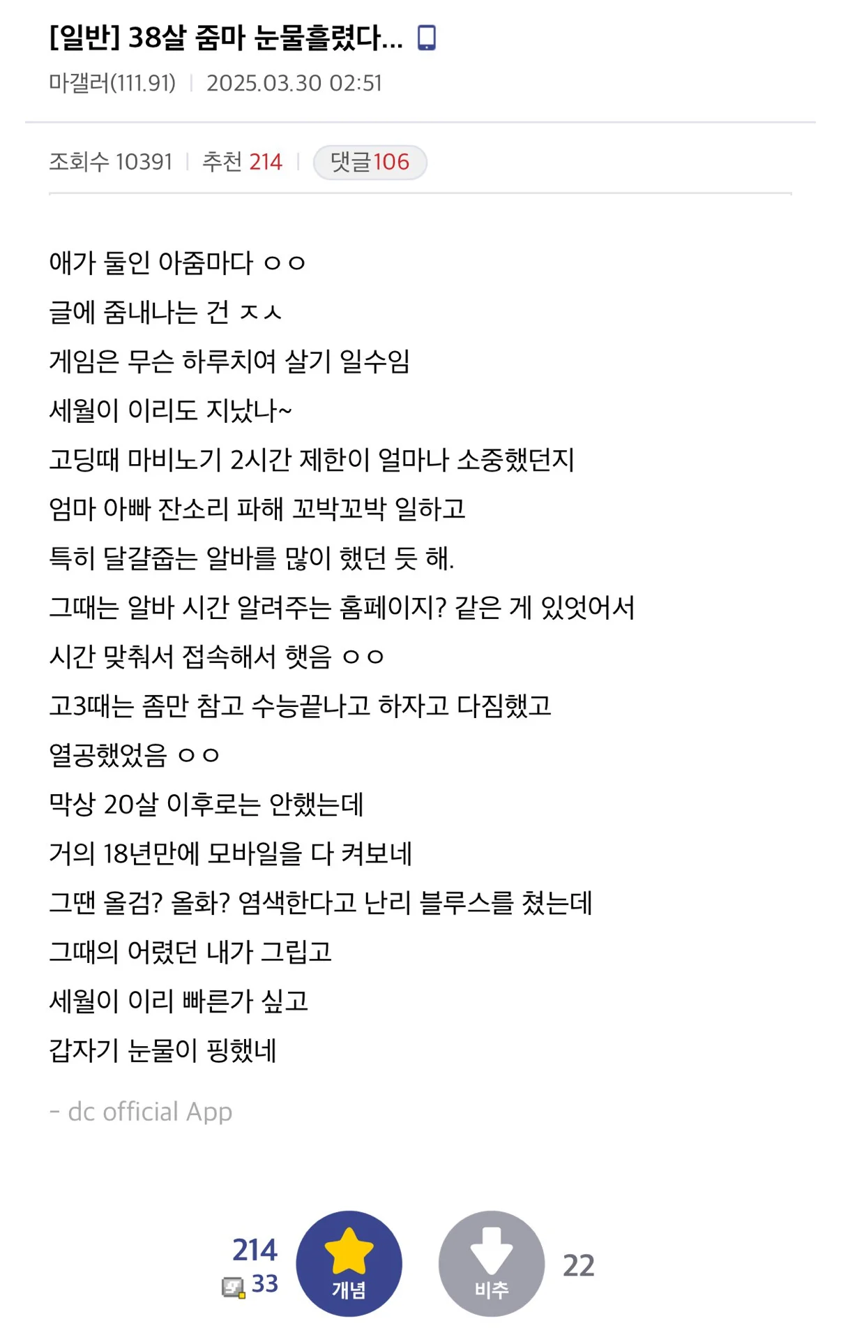열람중 38살 아줌마 눈물 흘렸다.. 등급아이콘 레벨아이콘 커뮤관리자 16:20 97