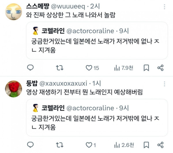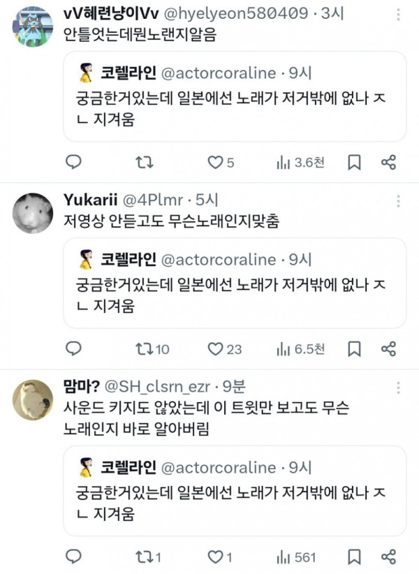 궁금한게 있는데 일본은 노래가 저거밖에 없나?