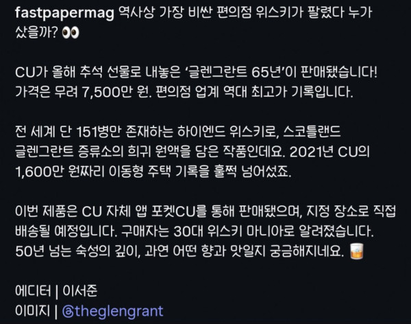글렌그란트 65년, 약 7500만원짜리 위스키를