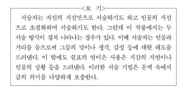 그럼 이쯤 되면 흔히 하는 생각이 있다. 문학이 이해가 되지 않을때는 <보기>를 봐라.