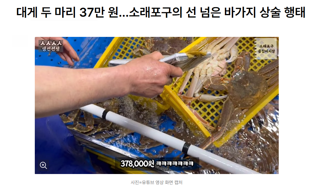 열람중 대게 37만원 눈탱이 씌우던 소래포구 근황 등급아이콘 레벨아이콘 커뮤관리자 10.06 86