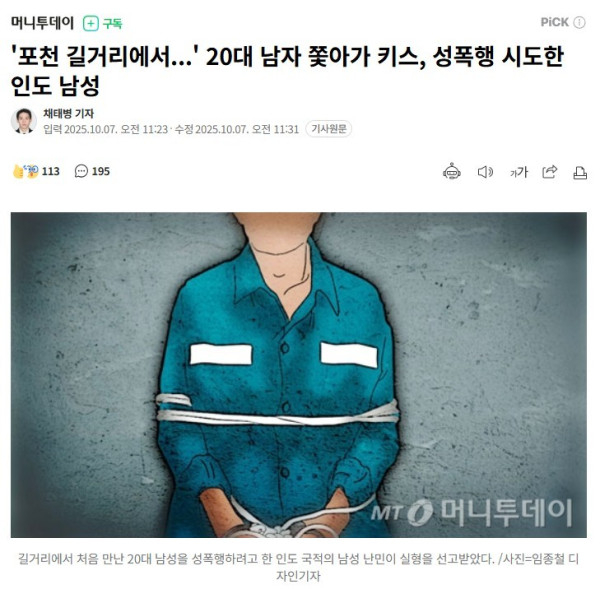 '포천 길거리에서..' 20대 성폭행 시도한 인도 남성