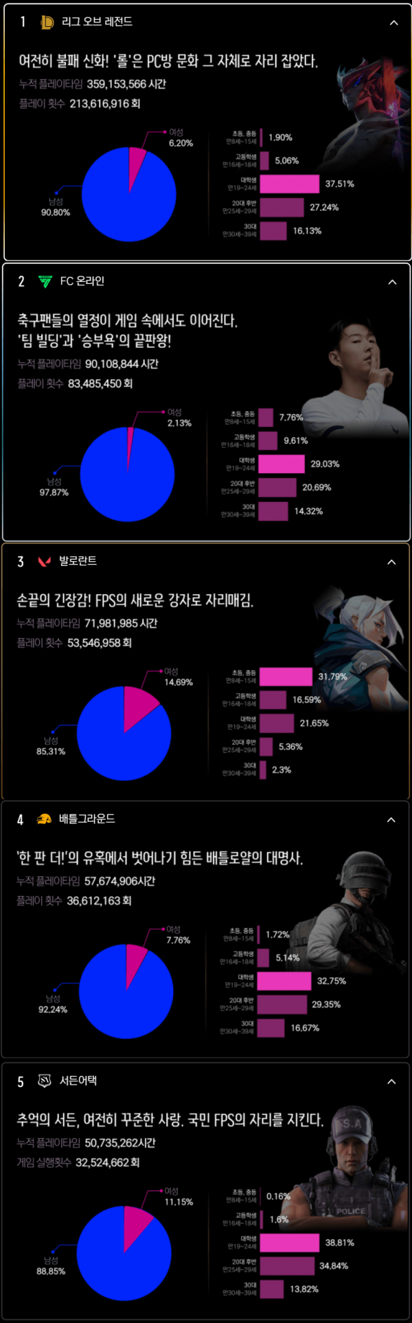 2024년 한국 연령대별 PC 게임 플레이 순위