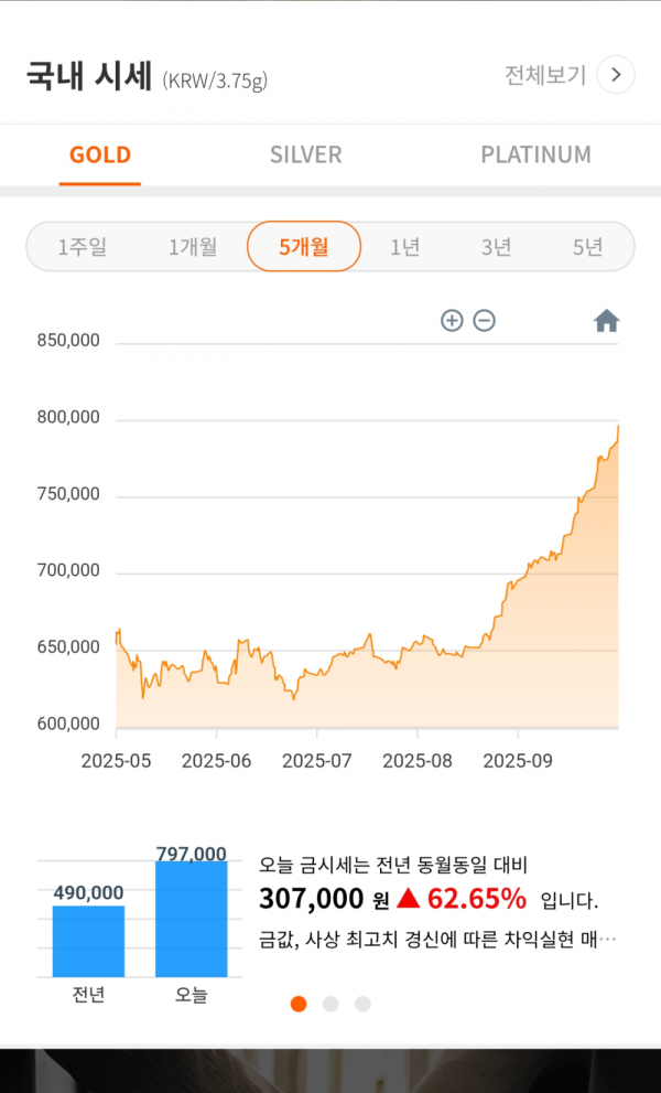 두달새 1돈(3.75g)당 15만원 증가 ㄷㄷ