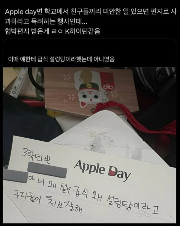 사과하는 날에 받은 경고장