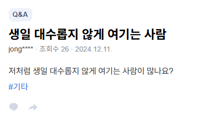 생일이라고 뭐 특별한거 없이 그냥 똑같은 하루라고 생각하는사람이 많아짐.나이 먹을수록 많아지는 유형의 사람