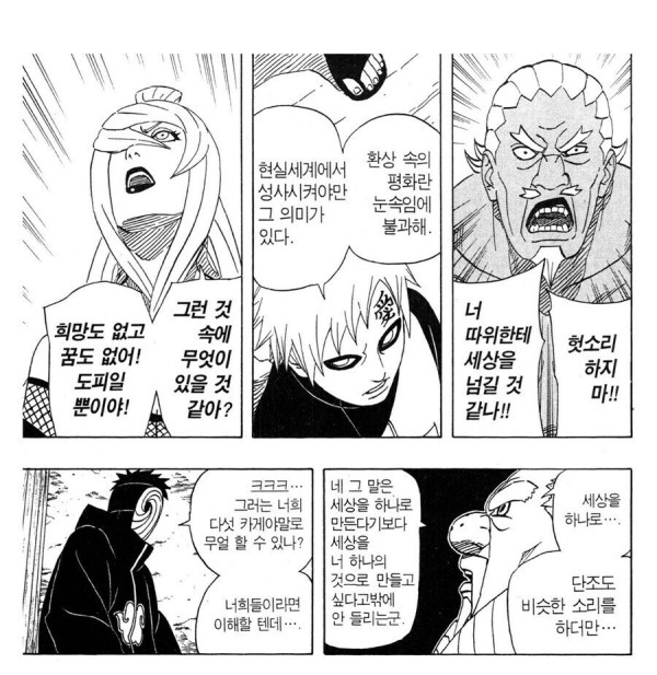 무한츠쿠요미를 계획을 들은 오카게 반응 : 눈속임이다, 세상을 니것으로 만들고싶은것일뿐
