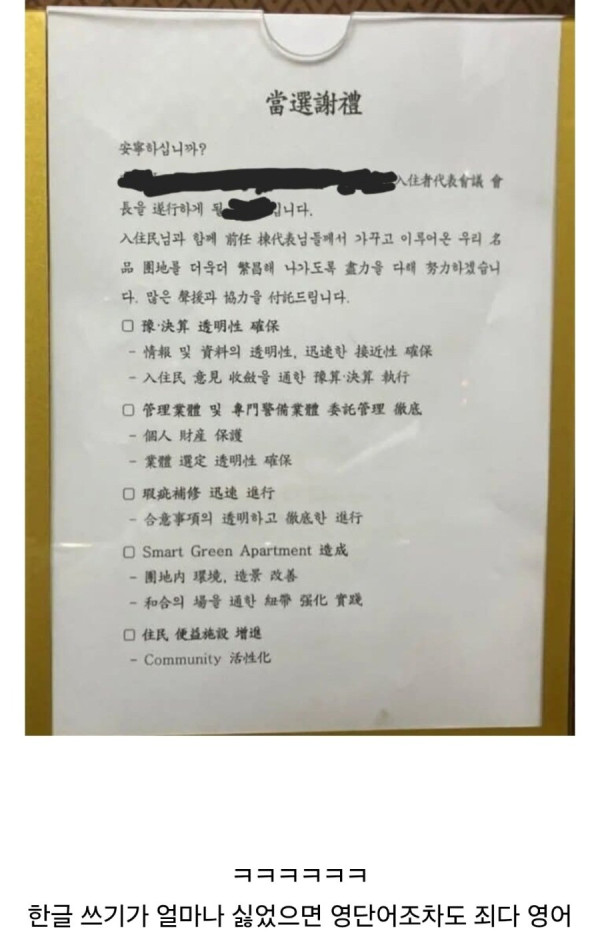 아파트 동대표의 문자 수준