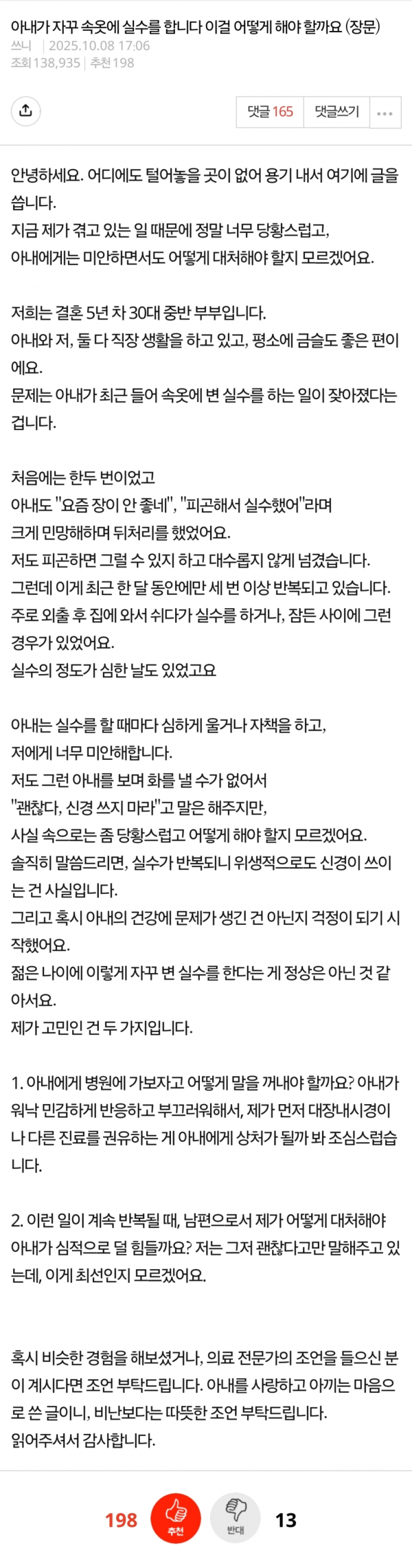 열람중 아내가 자꾸 속옷에 실수를 해요  등급아이콘 레벨아이콘 커뮤관리자 10.09 53