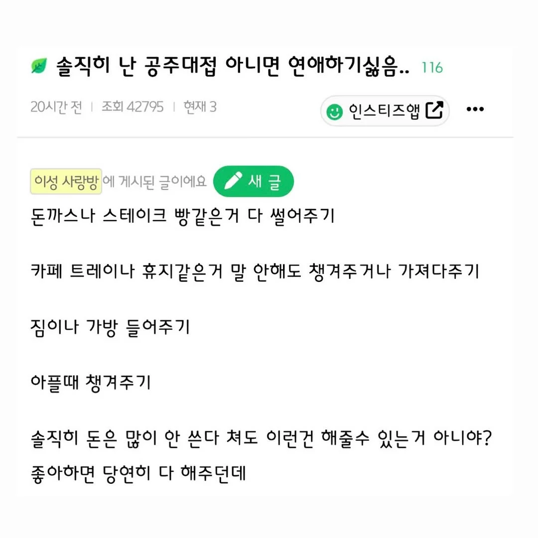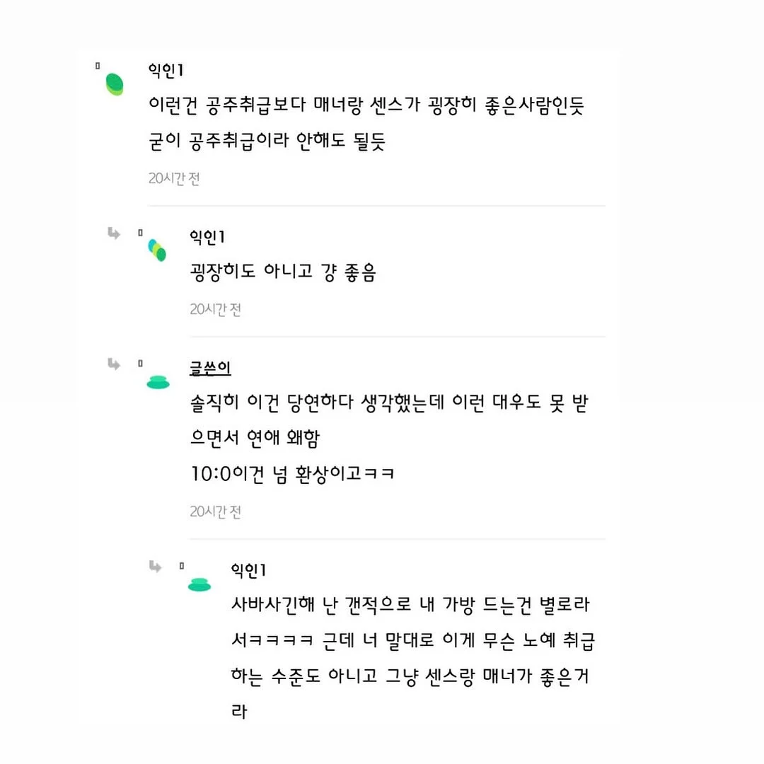 난 공주대접 안 받을거면 솔직히 연애하기 싫어..