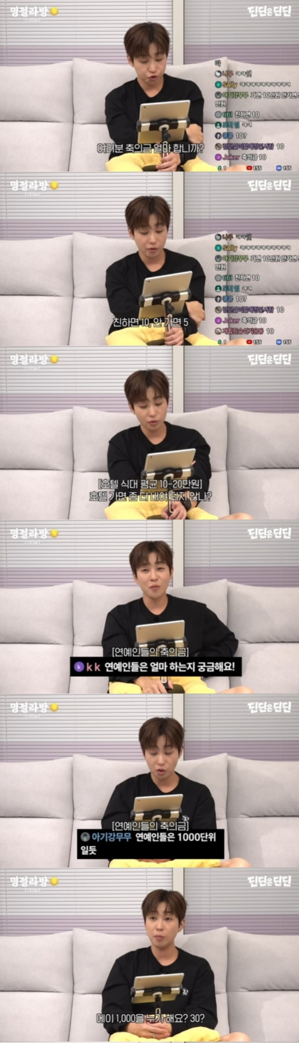 딘딘이 말하는 연예인들의 결혼식 축의금 액수