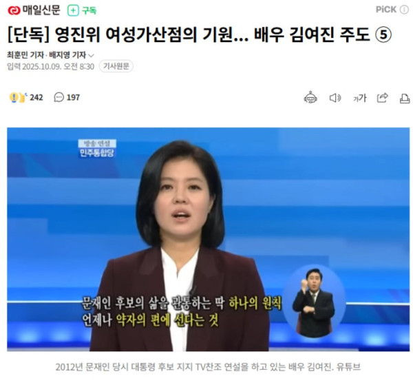 영진위 여성가산점의 기원... 배우 김여진 주도
