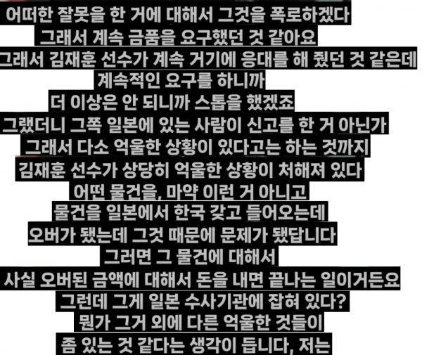 김재훈이 체포되었다며 손절하겠다는 영상을 올렸음