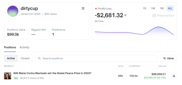 폴리마켓 공식 계정 X에서도 이 부분을 언급하니까, 저 사람이 어느 순간 매수를 멈췄는데