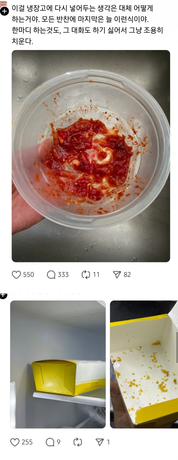 남편이 식사하고 남은거 자꾸 냉장고에 넣어놔서 화난 아내