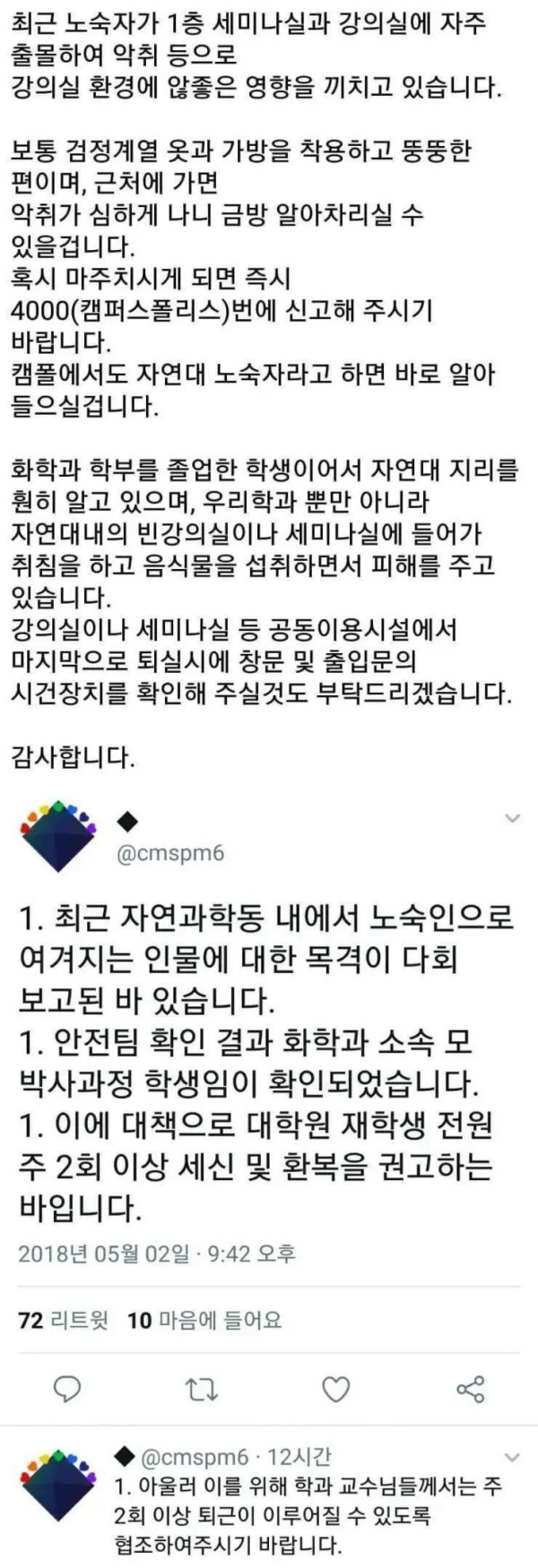 대학교에서 노숙자를 신고했더니 벌어진 일