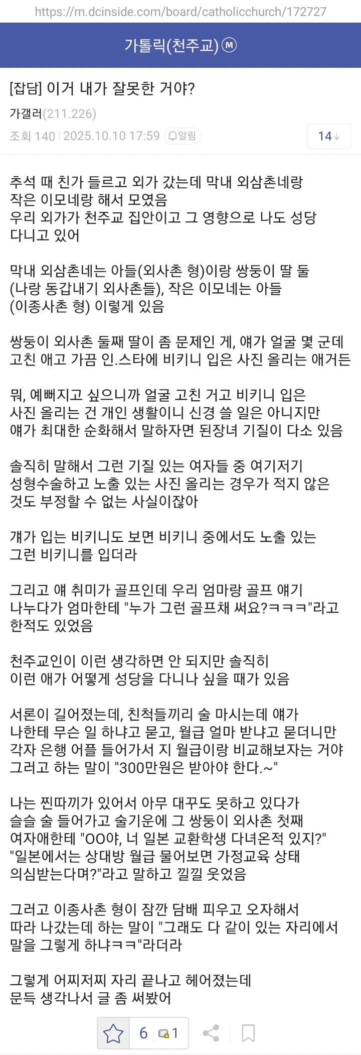 열람중 월급 물어보고 비교하는 친척에게 가정교육 드립친 썰 등급아이콘 레벨아이콘 커뮤관리자 17:56 54