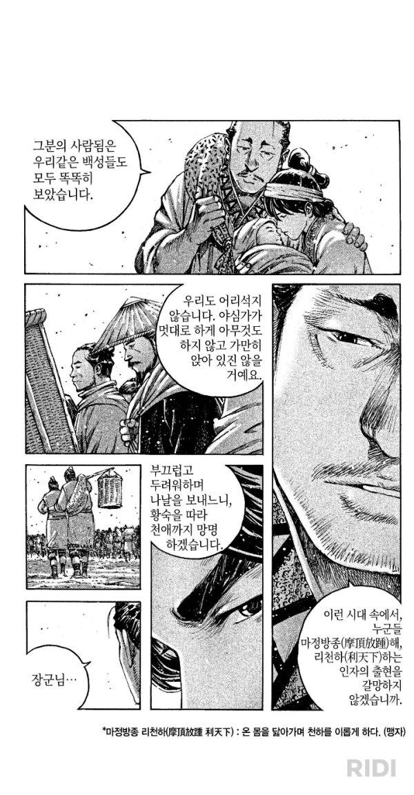 십만이나 되는 백성이 자기 고향과 지금까지의 삶을 포기하고 유비를 따라 먼 길을 떠난 에피소드.